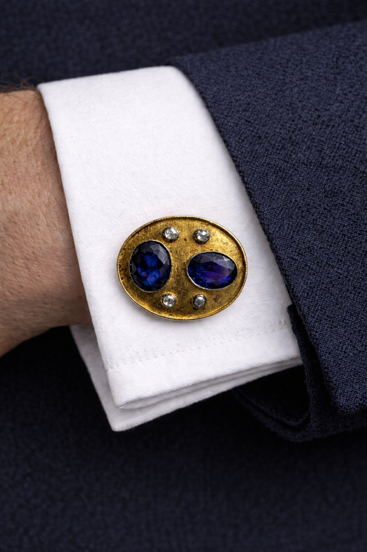 Dual Oval Emerald & Sapphire Cufflinks