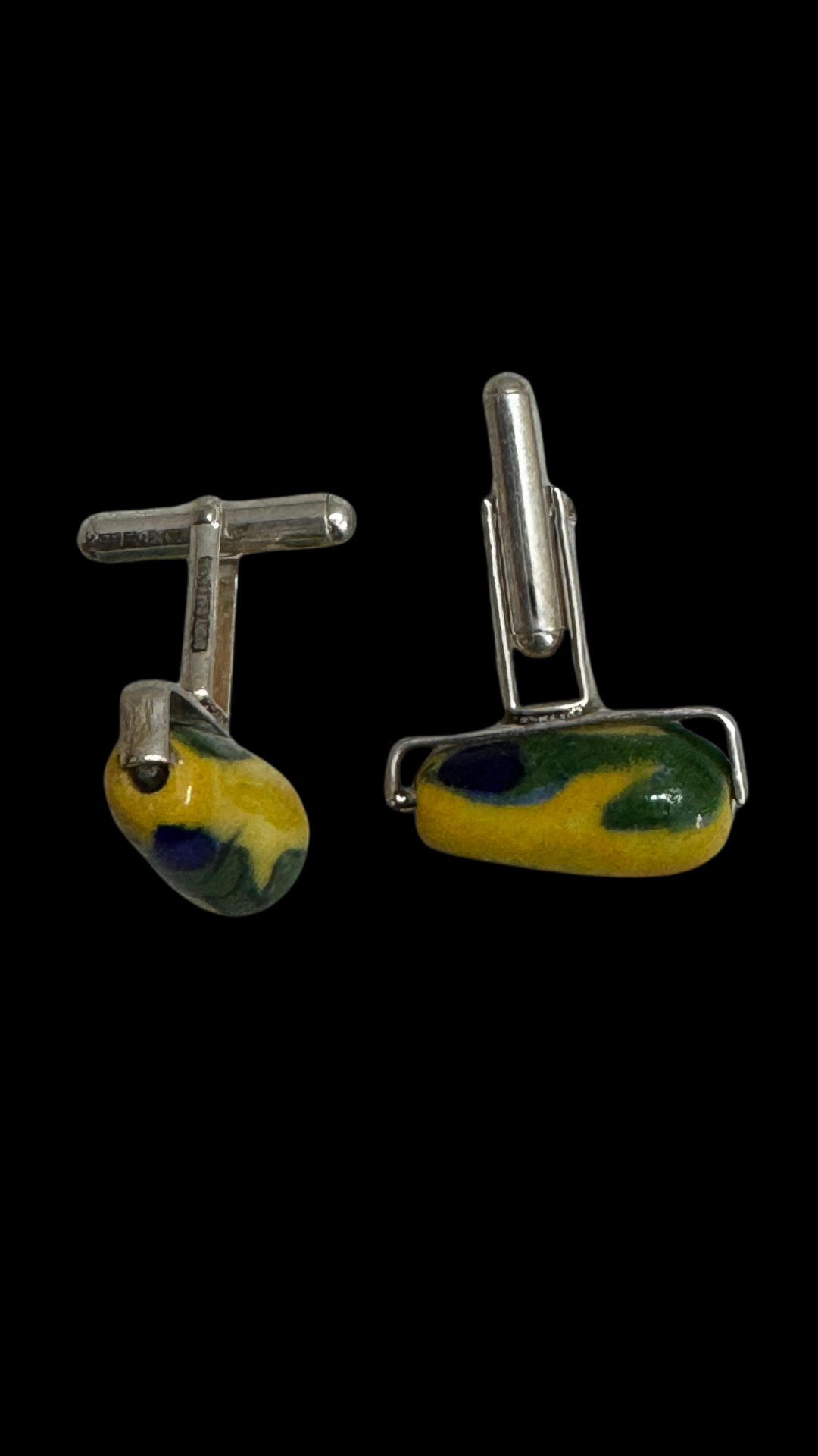 With delicate teardrop contours and signature blue enamel work, this pair brings a fluid, artisanal elegance to your cuff.