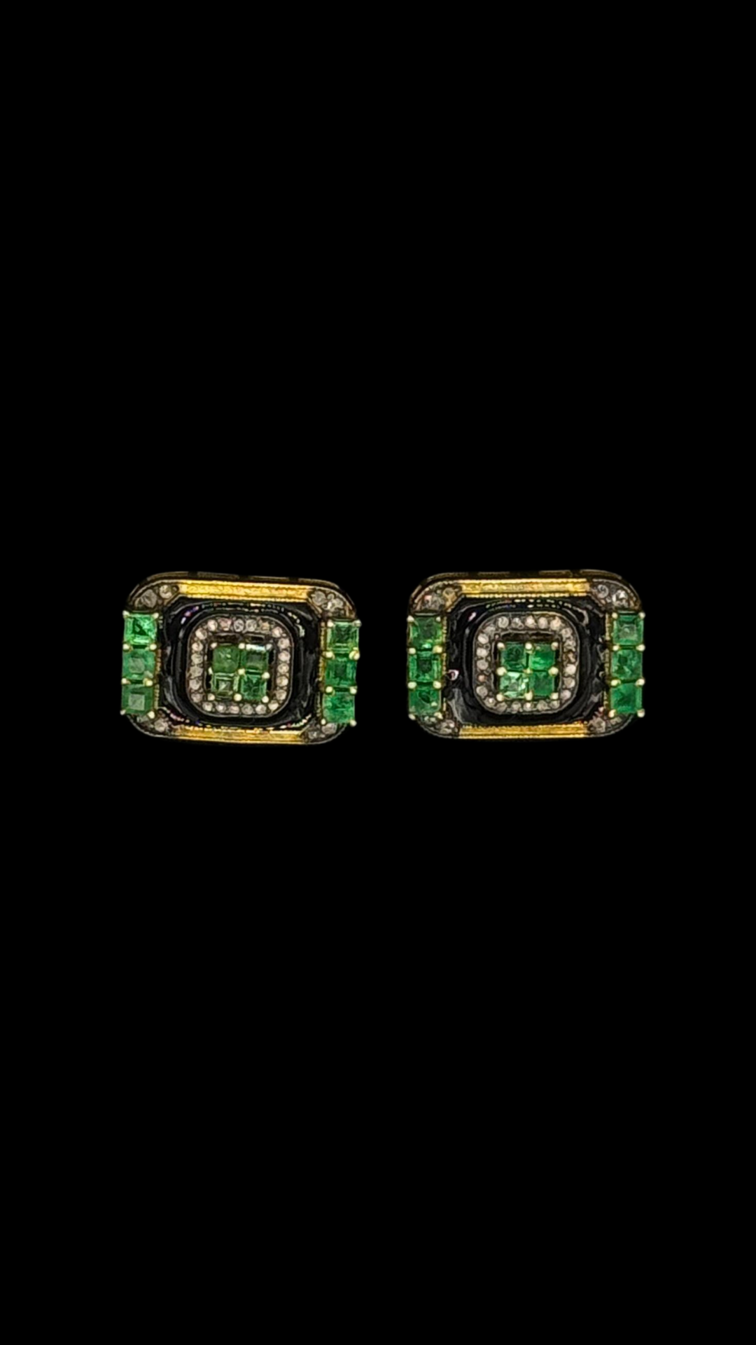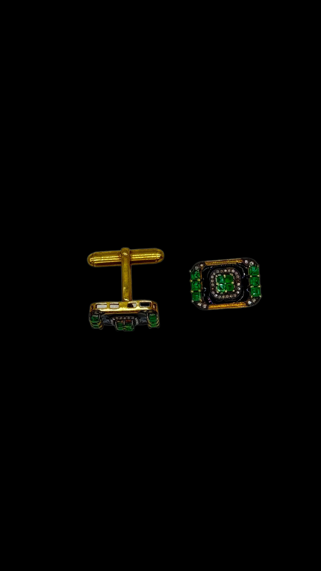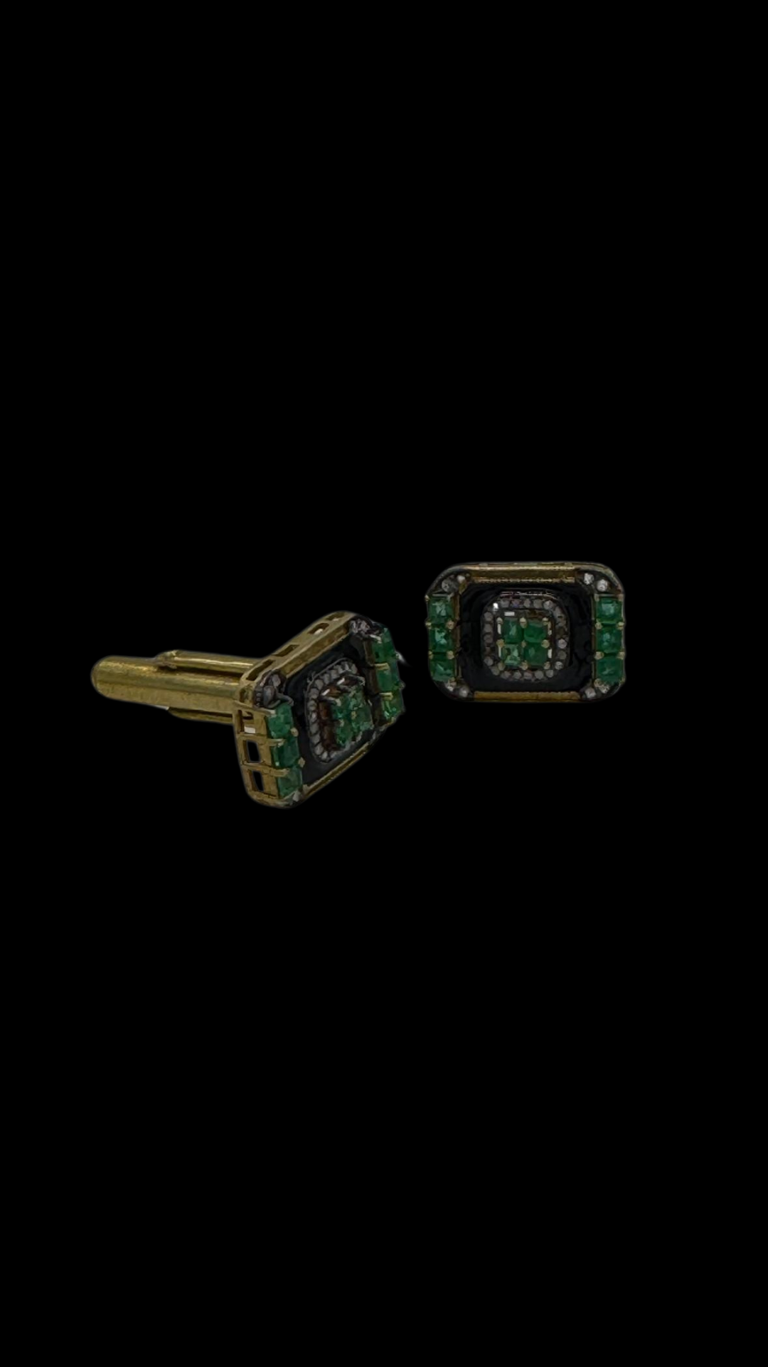 Minimal yet impactful, these classic silver cufflinks are accented with a rich emerald-toned enamel, offering a grounded, luxurious finish to any ensemble.