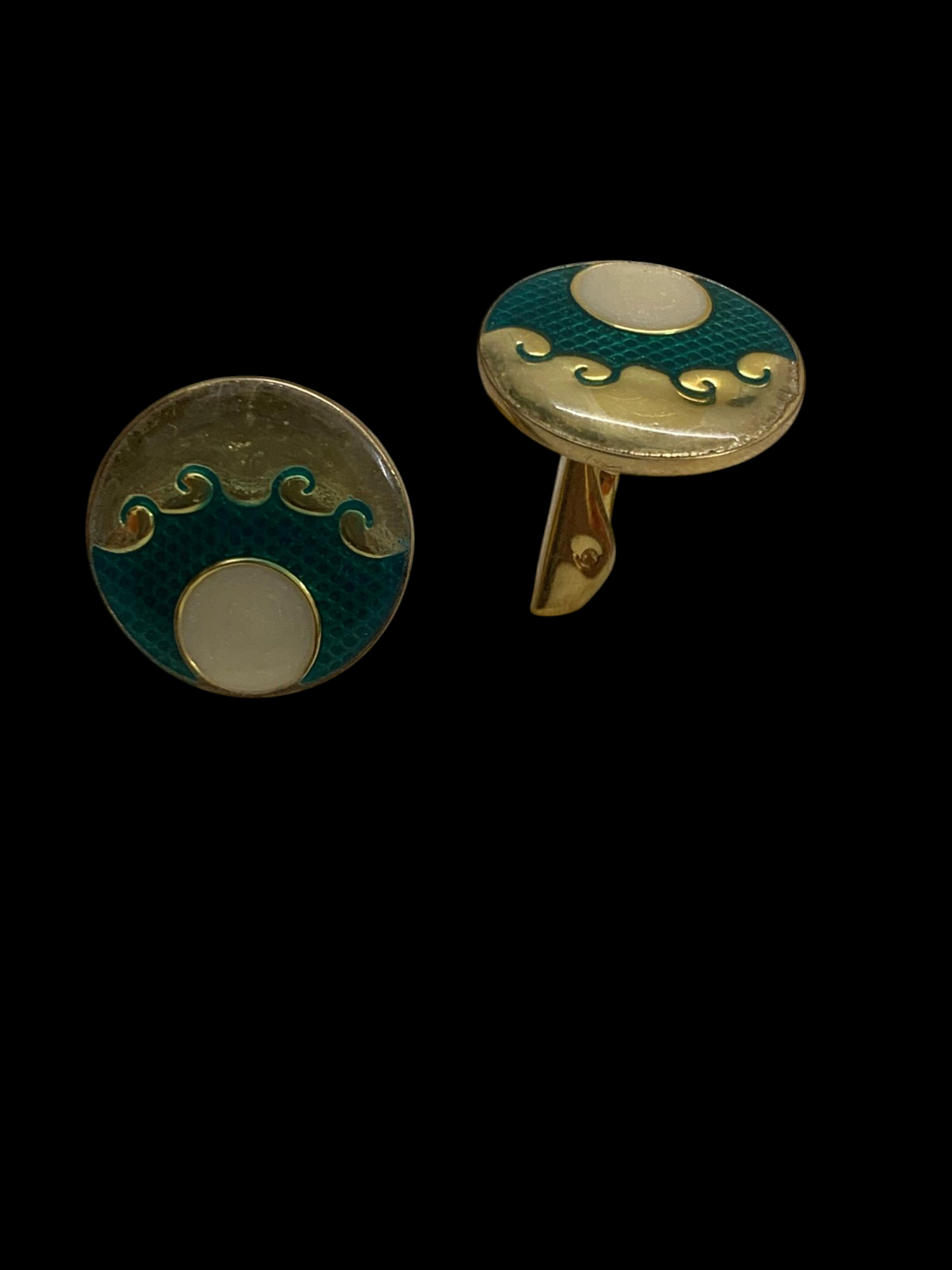 The Aranyak cufflinks capture the essence of new beginnings. Vibrant green enamel with golden waves contrasting speaks of rejuvenation, balance, and calm.