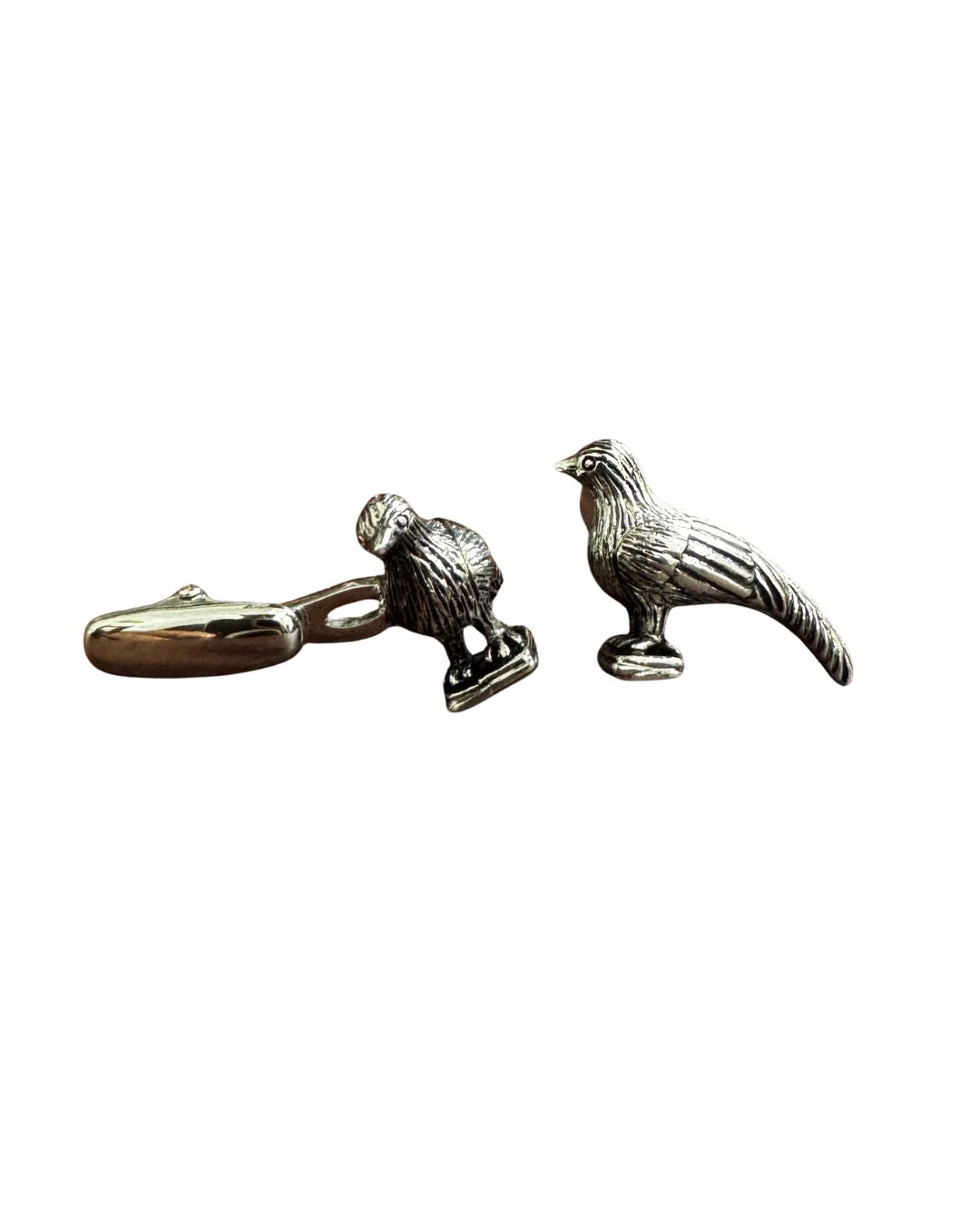 Inspired by the calm confidence of the pheasant, these cufflinks bring a refined natural touch to formal dressing. The sculpted feather detailing and antique silver finish create depth and character without shouting for attention. They sit beautifully on white and pastel cuffs, adding a sense of poise and understated charm.