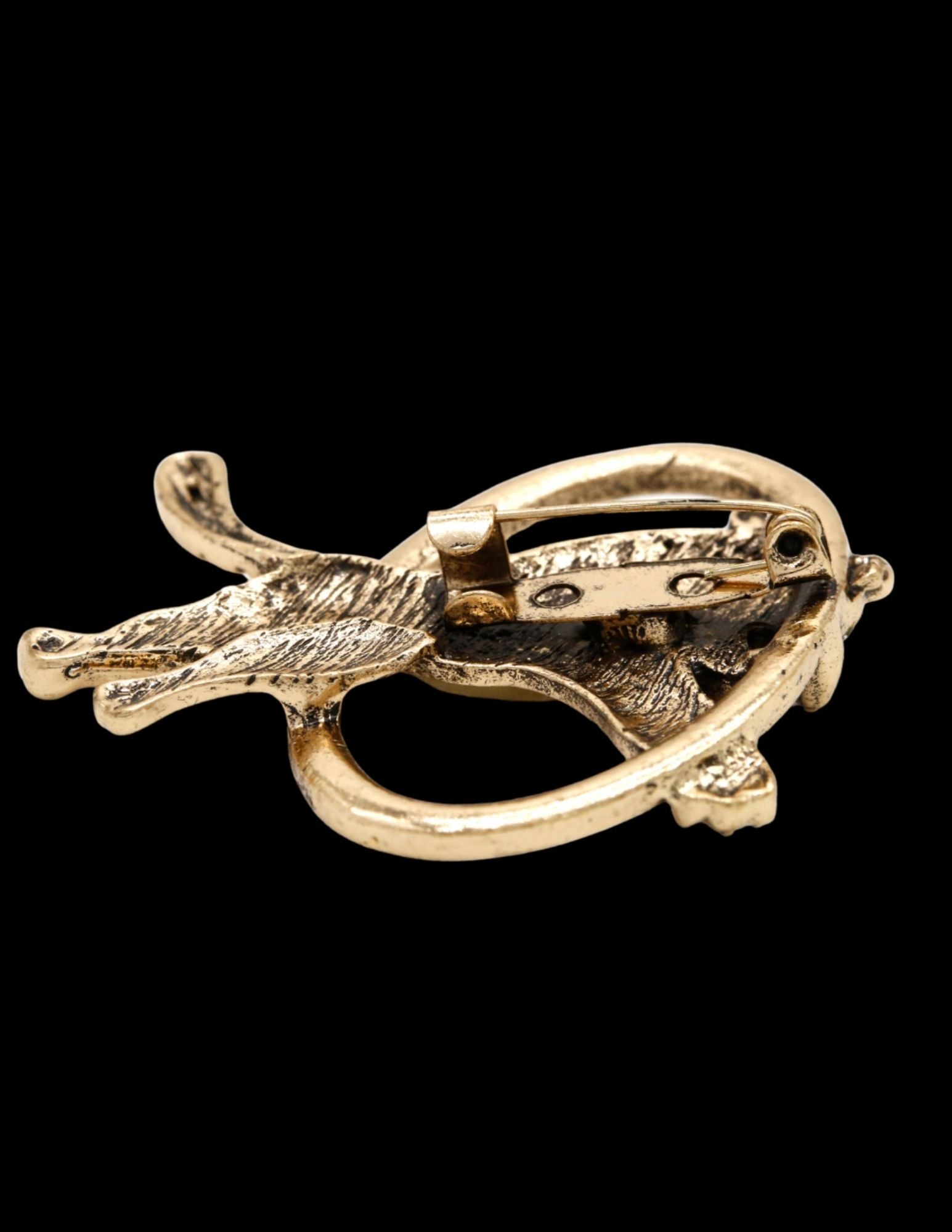 Finished in an antique gold tone, the surrounding halo of amber-hued stones adds depth and a soft glow, making the design striking without feeling loud. It sits beautifully on blazers, bandhgalas, sherwanis, coats, and structured dresses—anywhere a statement is meant to be made quietly but clearly.