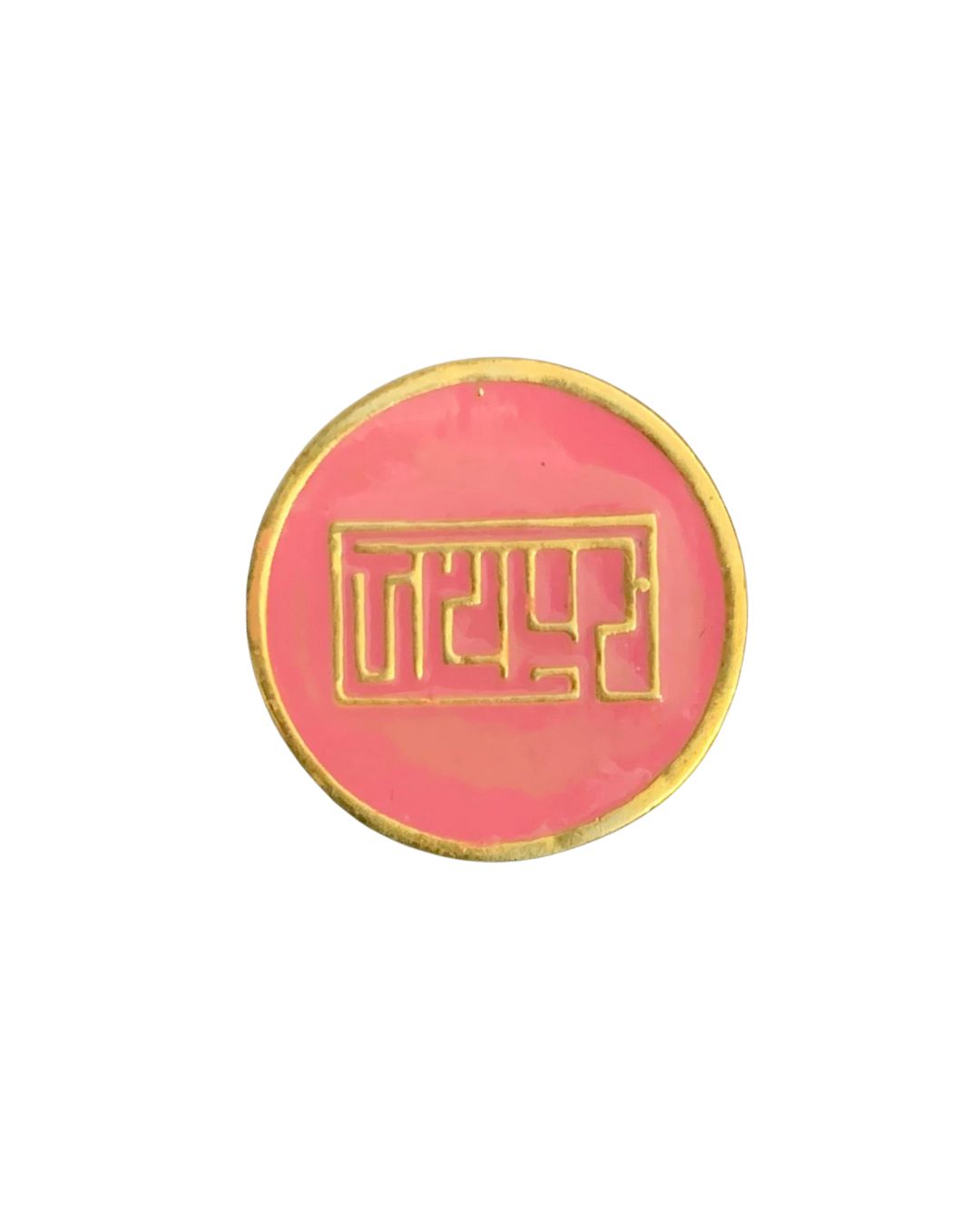 This elegant circular brooch beautifully highlights the word “Jaipur” inscribed in a stylized design at its center, set against a striking pink enamel background. Crafted in silver, the piece combines regal charm with modern minimalism, reflecting the royal heritage of the “Pink City.”