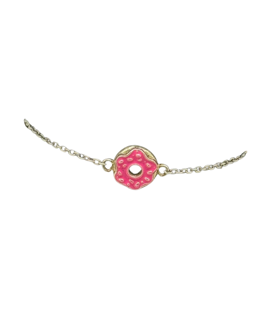 Sweet, fun, and full of delight - this pink donut bracelet is made for little ones who love a pop of color and play. Crafted in fine 925 sterling silver, it features a glossy enamel donut charm with a hint of gold finish, making it as adorable as it is durable. Lightweight and safe for everyday wear, it’s a perfect blend of style and sweetness.