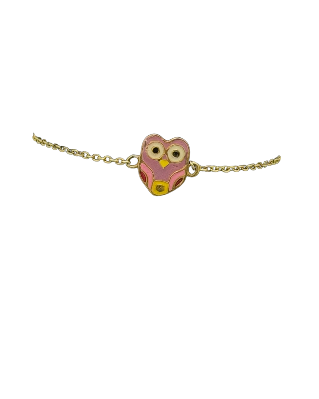 Bright, curious, and full of charm - just like your little one. This adorable bracelet features a pink and yellow enamel owl, crafted in fine 925 sterling silver and finished with a golden touch. Lightweight and skin-safe, it’s perfect for everyday wear and gentle on delicate hands.