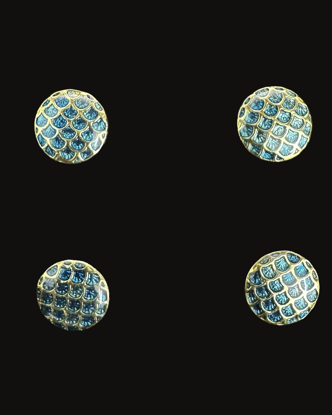 A striking honeycomb-inspired pattern finished in antique gold over a deep black enamel surface. Each cell carries delicate textured detailing, giving the button depth and character. Strong, refined, and effortlessly festive.
