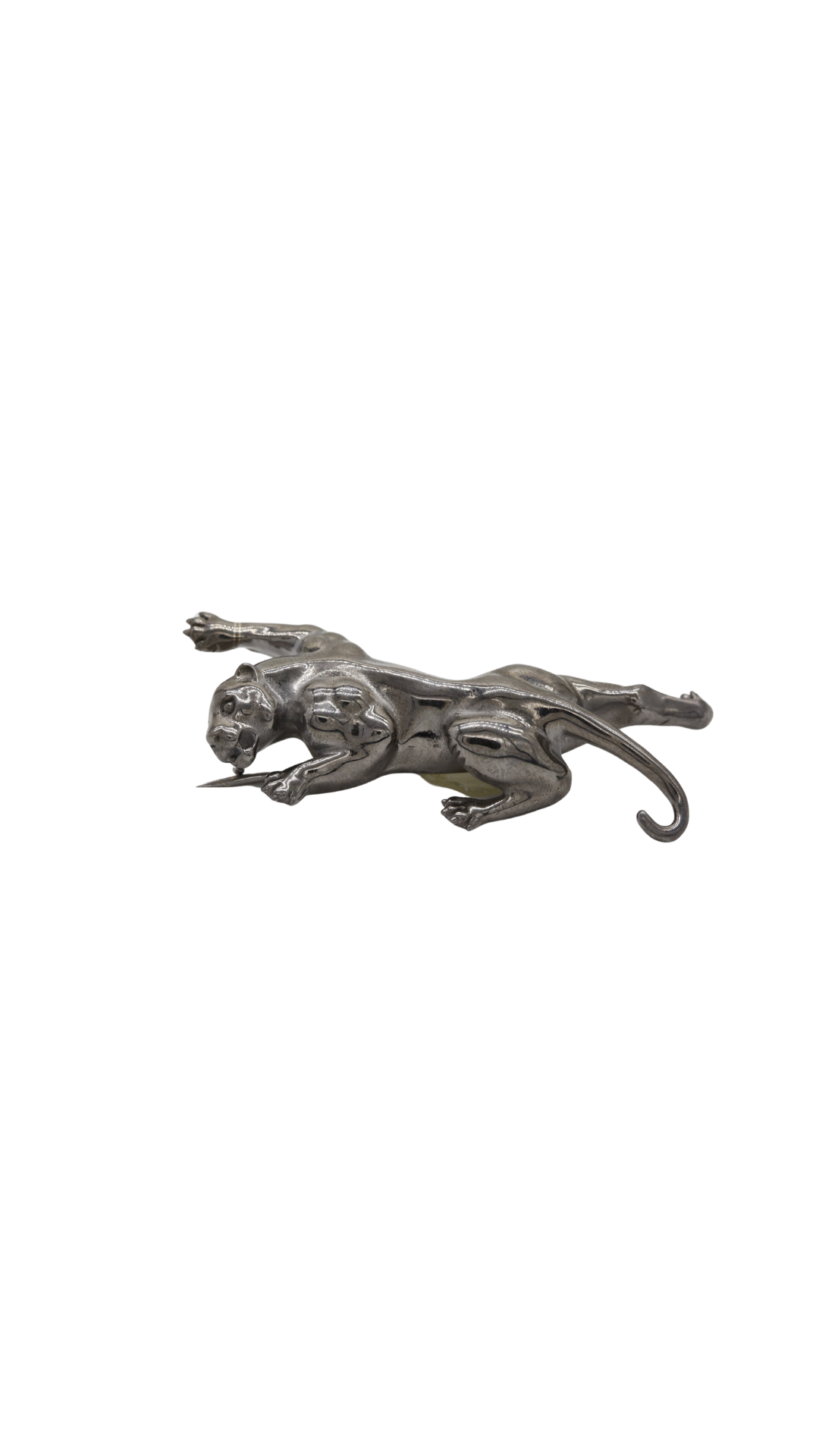 The Panther Brooch draws inspiration from the untamed wilderness and raw nature. Representing the elusive and powerful panther, this brooch captures the essence of the wild. Crafted in 925 silver, it symbolizes strength, agility, and the beauty of the natural world. The Panther Brooch is a statement piece that brings the spirit of the raw nature into your style.