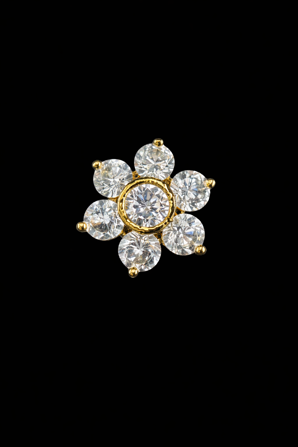 Inspired by traditional royal jewellery, this kurta button showcases a vibrant ruby-toned center surrounded by luminous pearls arranged in a floral formation. The gold framework adds warmth and elegance, creating a sophisticated accessory that elevates any festive or ceremonial kurta.
