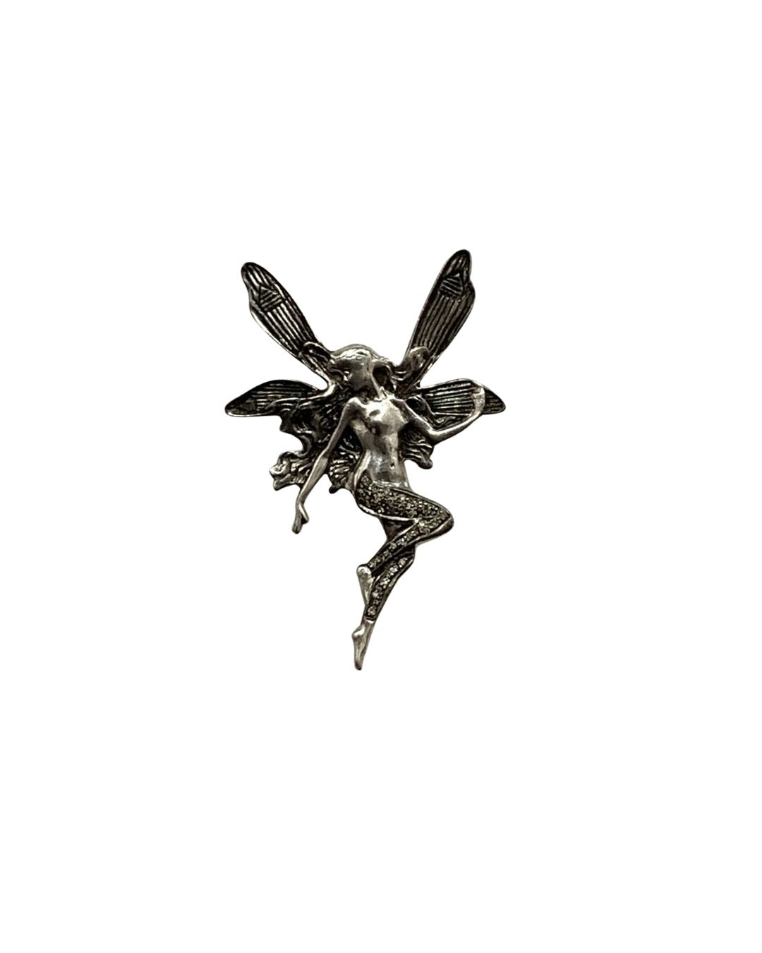 Crafted in fine silver, this brooch captures the mystical charm of a fairy in flight. With delicately detailed wings and a graceful posture, it symbolizes magic, wonder, and protection. The intricate texture on the wings and body adds depth, making it a striking piece of jewelry for lovers of fantasy and art.