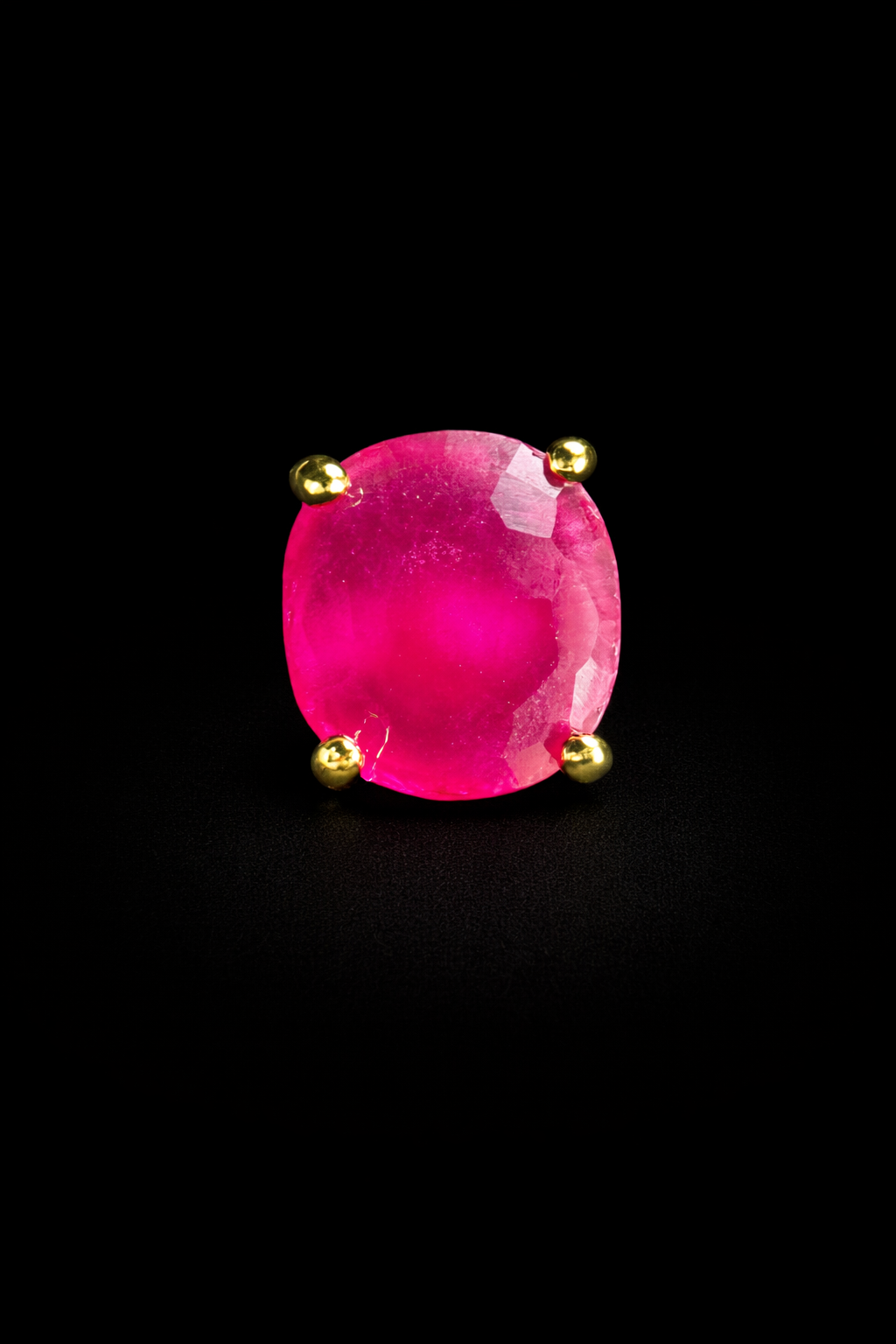 A striking kurta button featuring a vivid rani pink stone set in a minimal gold frame. Clean, bold, and elegant, the design lets the vibrant gemstone take center stage. Perfect for adding a refined yet festive accent to traditional outfits.