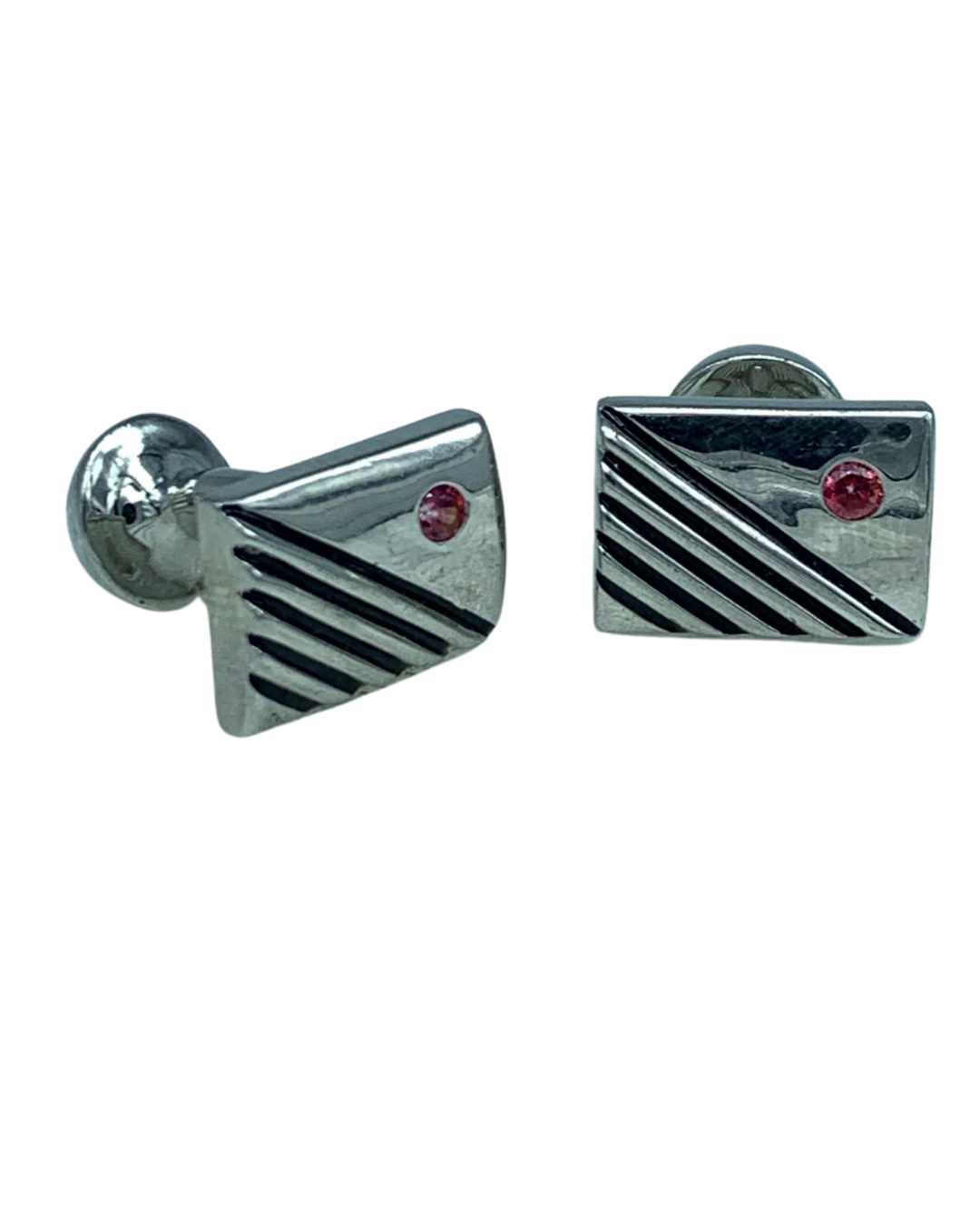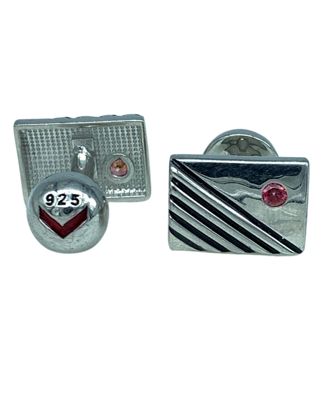 Minimalist geometry meets radiant charm. The Zénōn Cufflinks boast striking diagonal grooves with a pop of magenta—a sleek and contemporary take on masculine elegance, handcrafted in pure 925 silver
