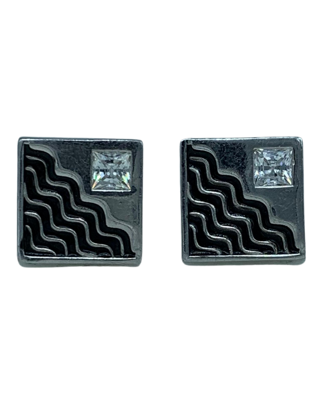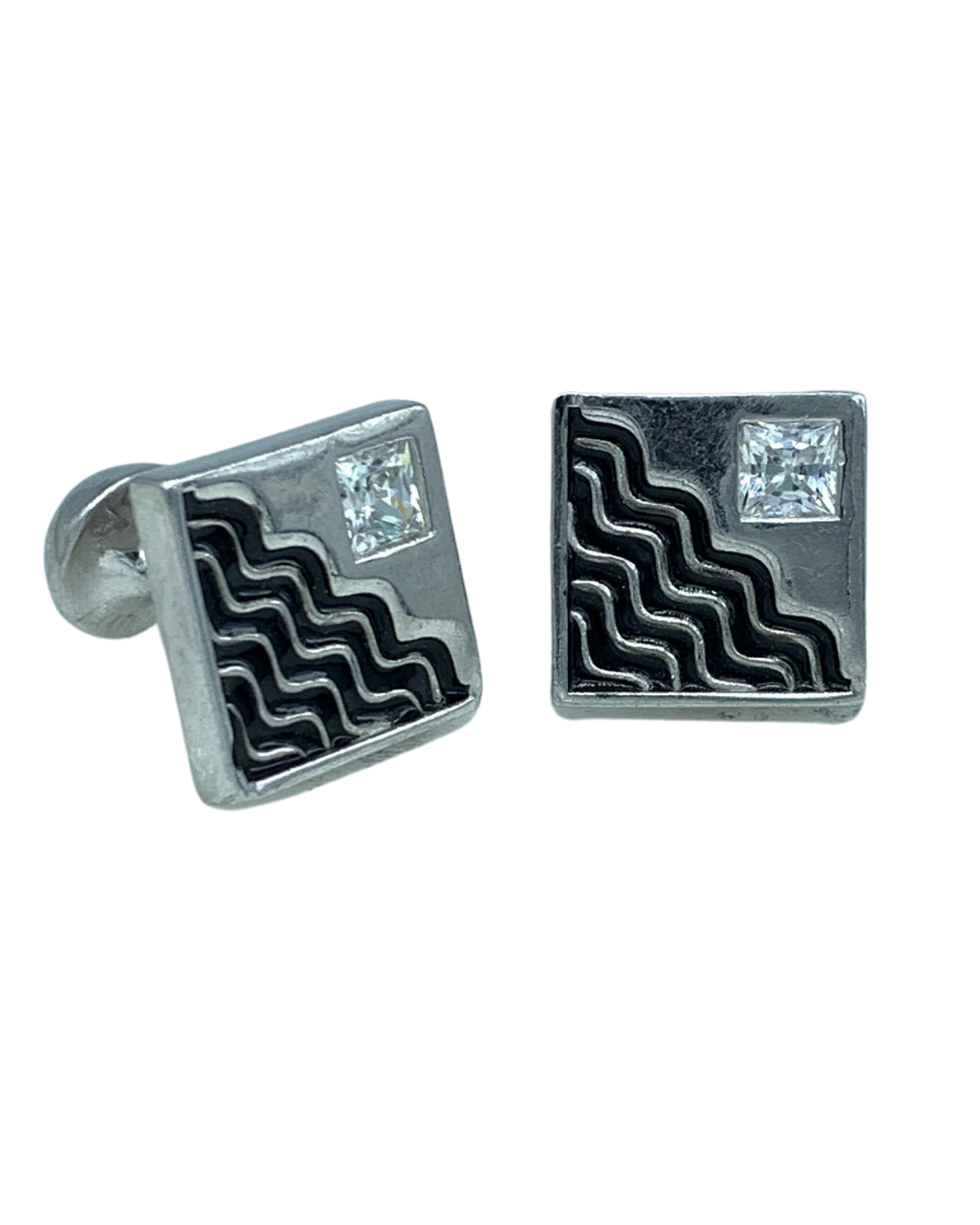 Let your style ebb and flow with the elegant rhythm of the Thalassa Cufflinks. With linear wave detailing and a single square-cut design, this 925 silver piece is designed for those who find calm in movement and strength in subtlety.