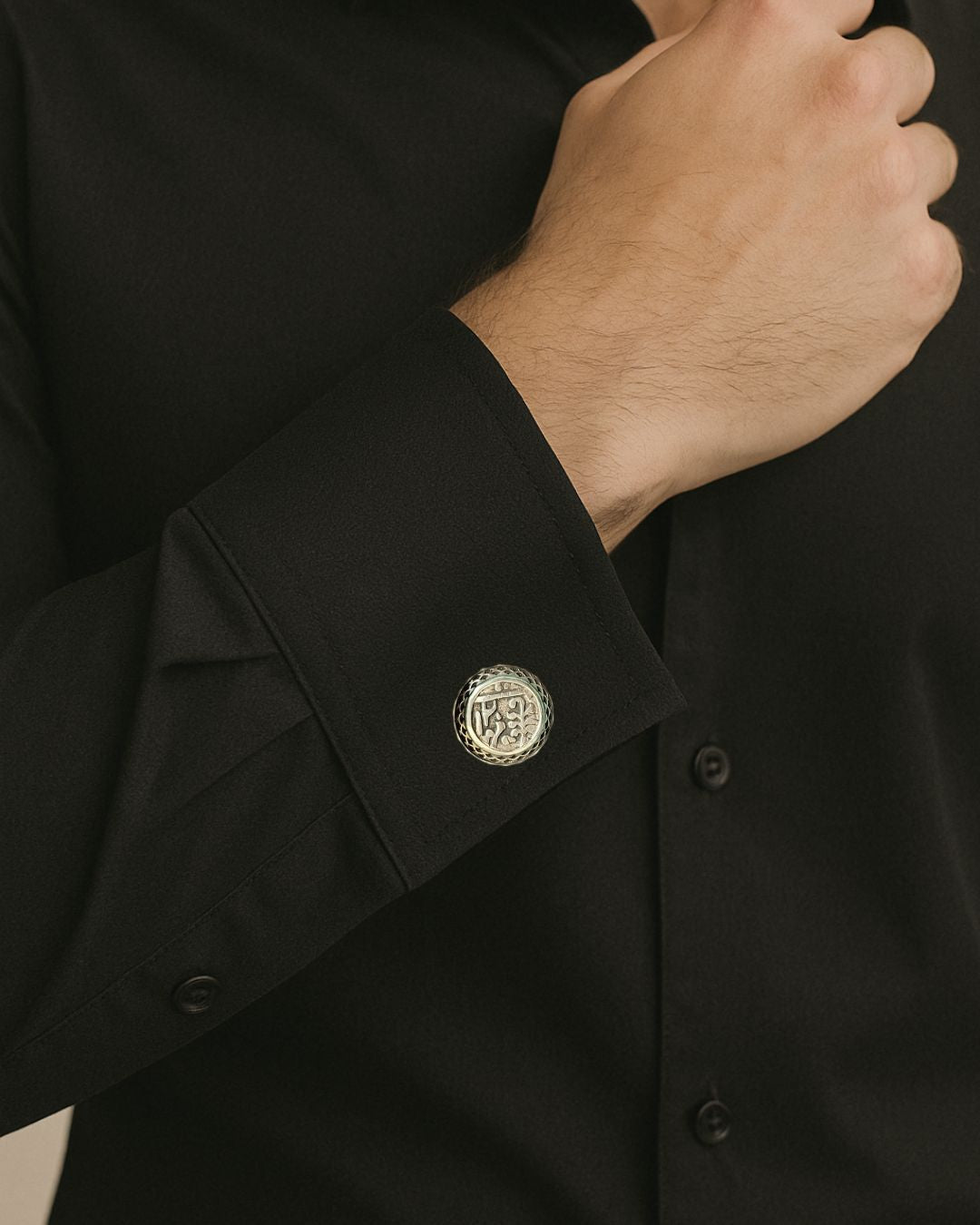 Crafted in sterling silver, the Jhadshahi Cufflinks are an ode to regal nostalgia and refined rebellion. Inspired by the timeless art of calligraphy and insignias once worn by princely states, these cufflinks carry an intricate motif rooted in Indian royal archives—reinvented for the modern gentleman.