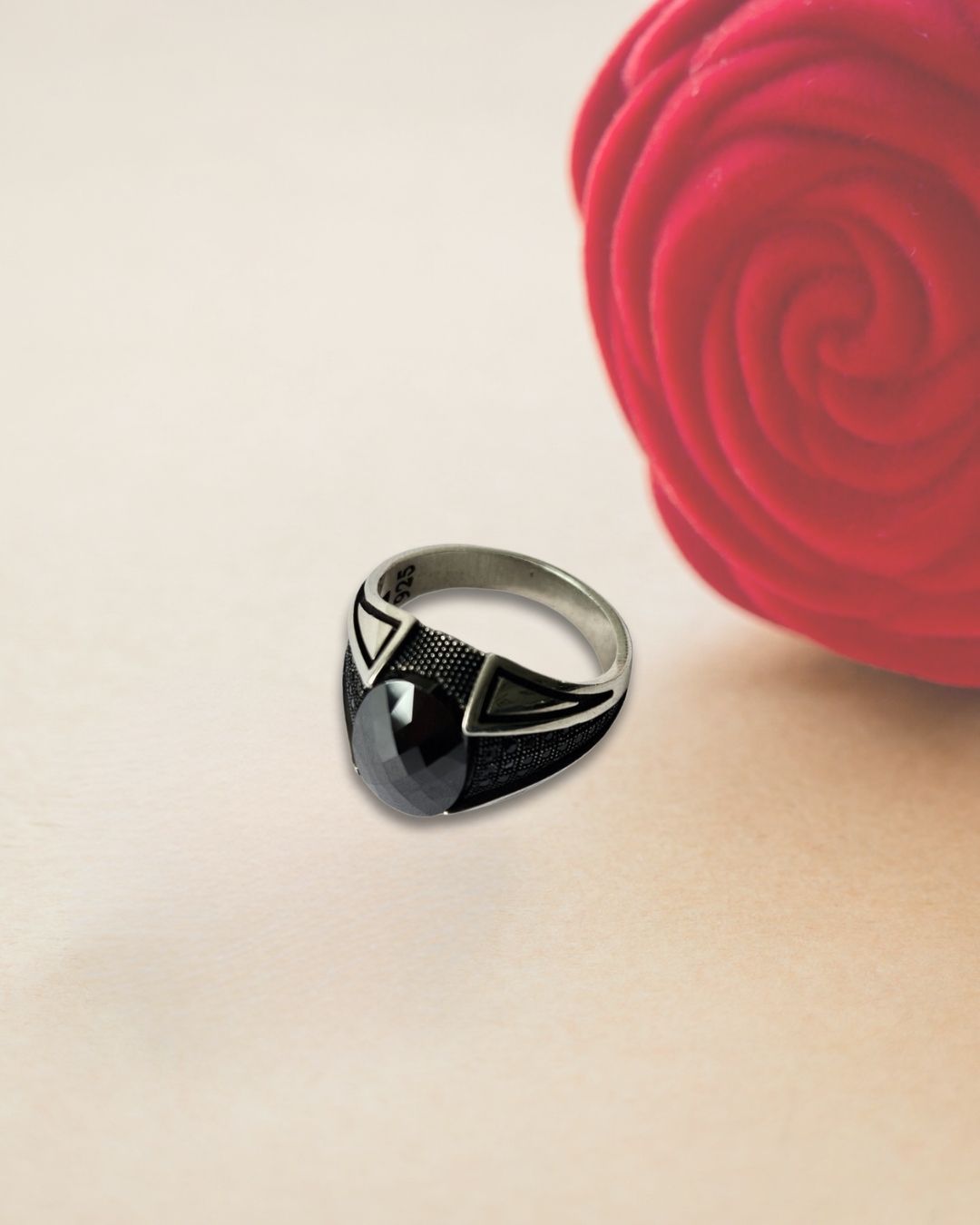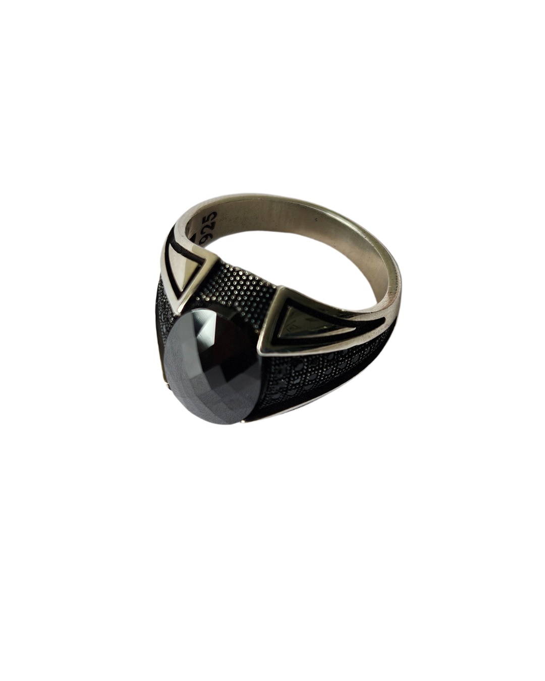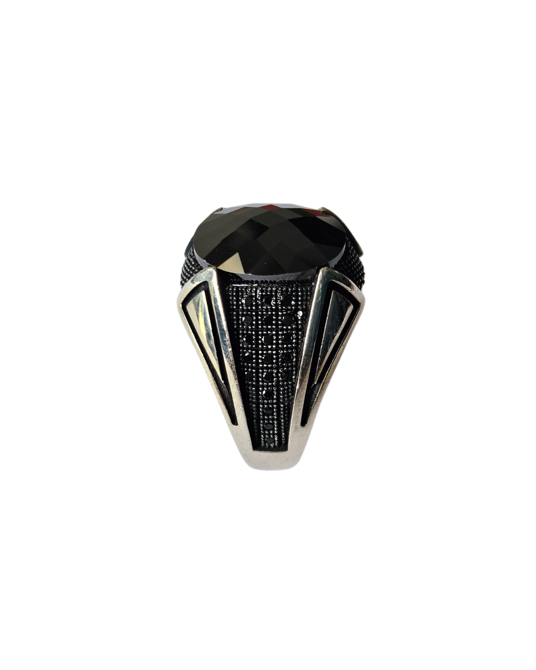 Unapologetically bold, the Drakon ring is crowned with a large faceted stone—reminiscent of dragon lore and ancient armour. Flanked by architectural textures in antique-finish silver, this piece doesn’t just complete a look—it commands it.