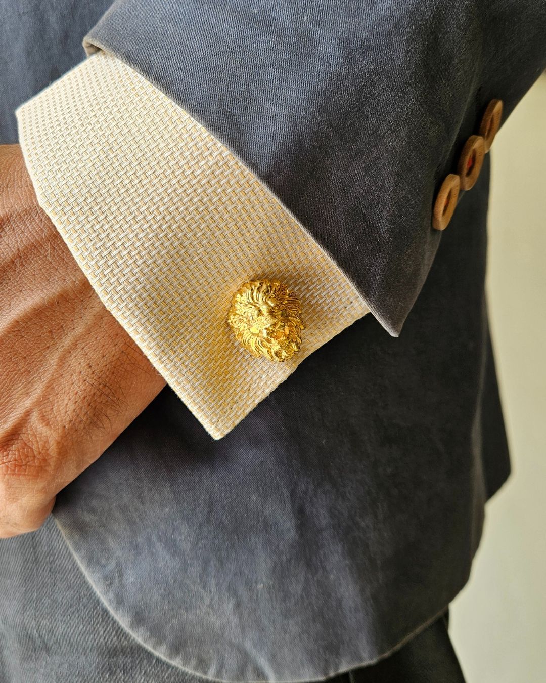 Bold yet timeless, these cufflinks feature a majestic lion motif—an emblem of strength and quiet authority. Handcrafted to bring a regal edge to contemporary dressing.