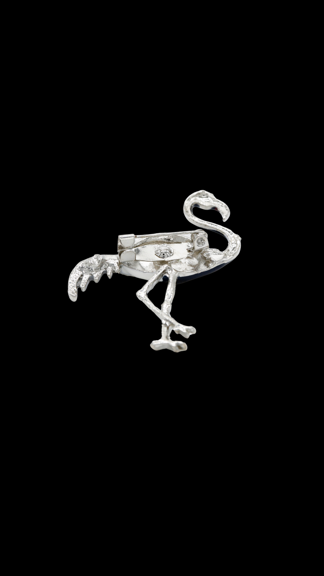 The Midnight Crane Brooch is a refined interpretation of one of the most graceful birds in nature. Sculpted in a fluid standing pose, the crane’s long neck, curved beak, and slender legs give this piece an elegant sense of movement even when still.