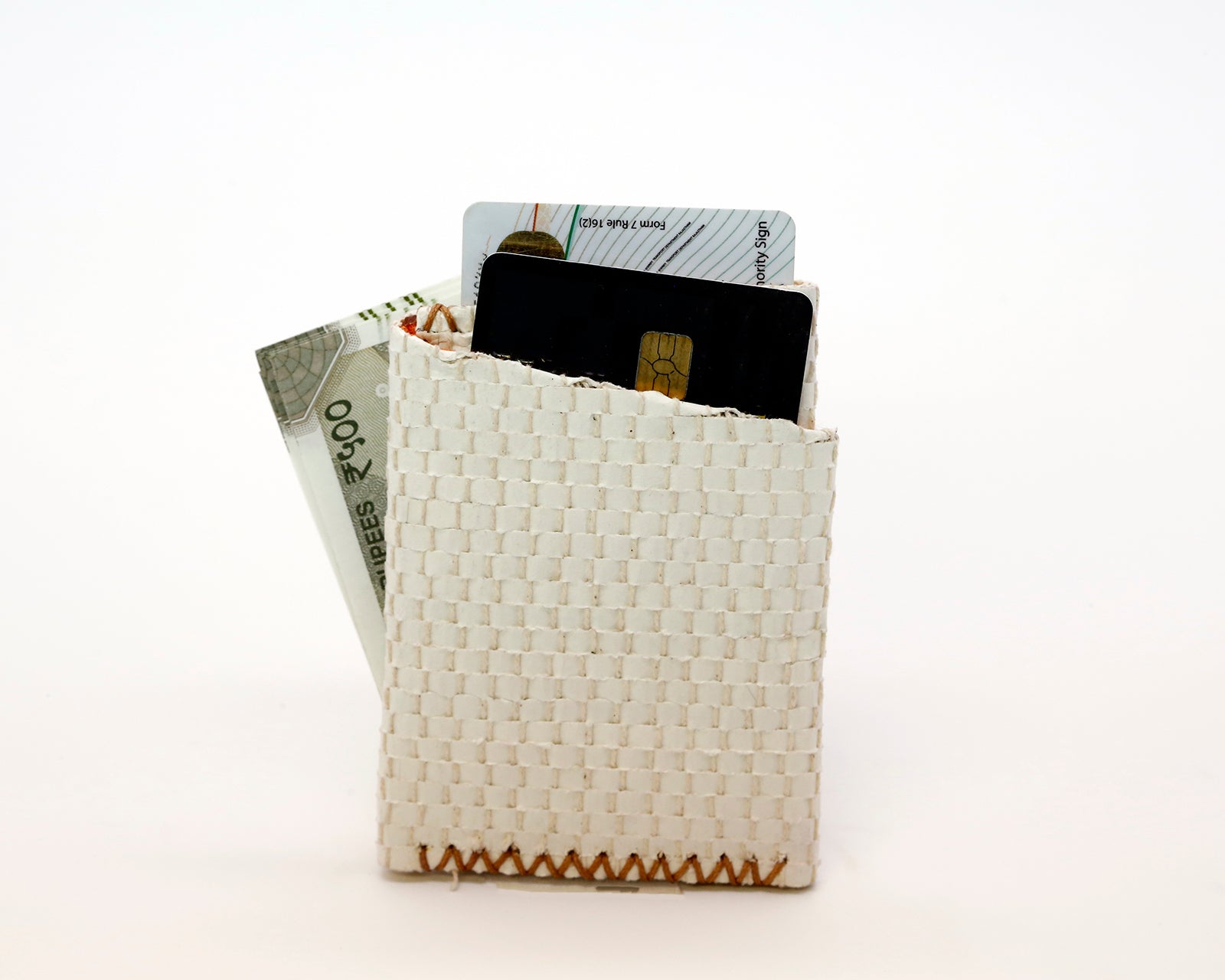 Introducing our exquisite hand woven paper wallet, a harmonious blend of art and sustainability. Available in two stunning colour options - White with Orange and Refreshing Green.