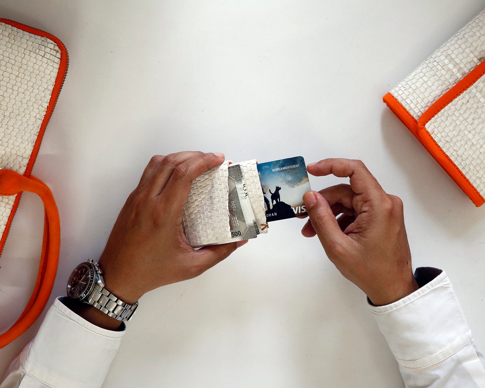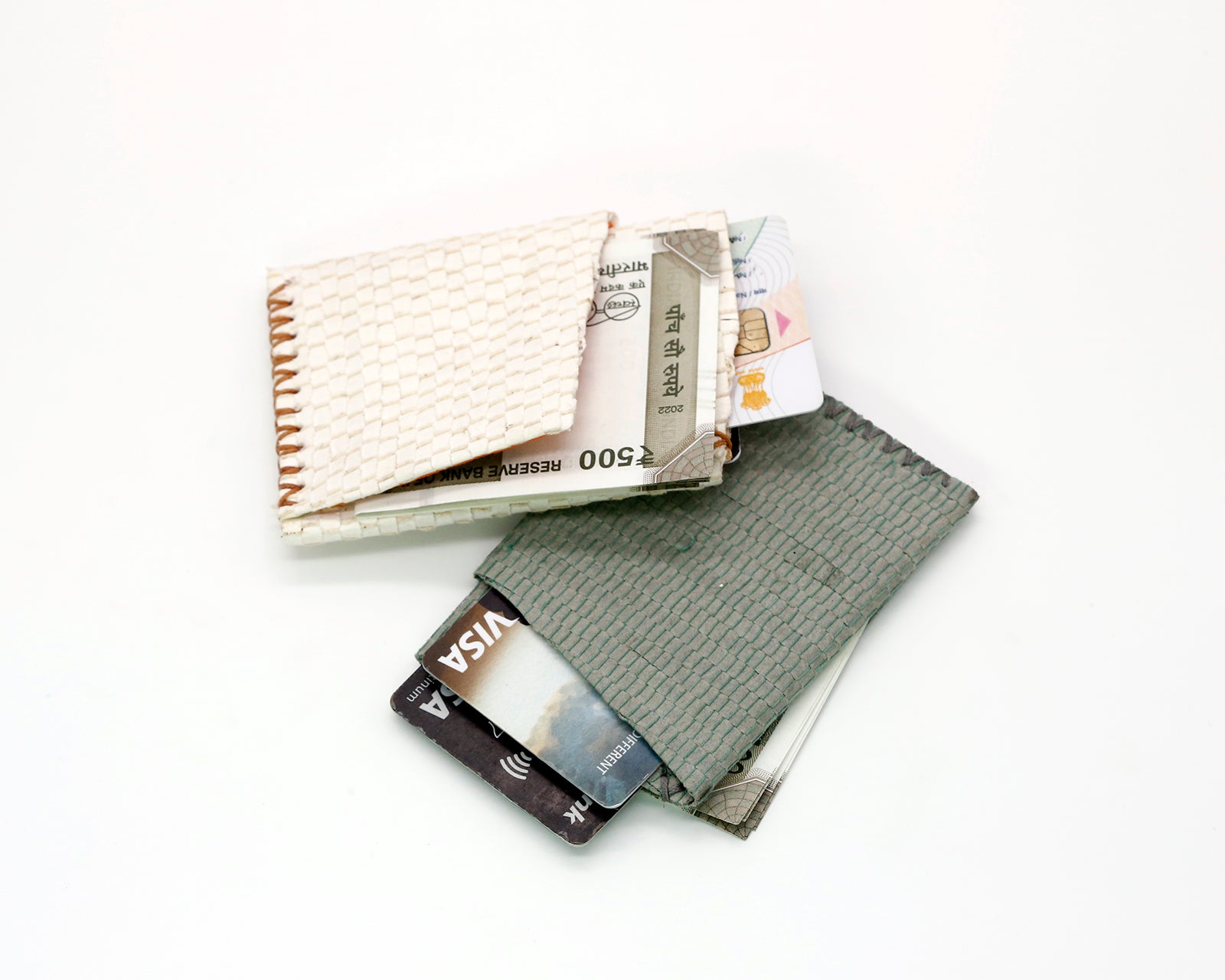 Introducing our handwoven paper wallet, a harmonious blend of art and sustainability, in White with Orange and Refreshing Green options.